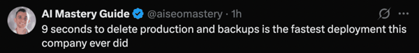 「仅用 9 秒就删除了生产环境和备份数据,这是该公司有史以来最快的部署速度。」