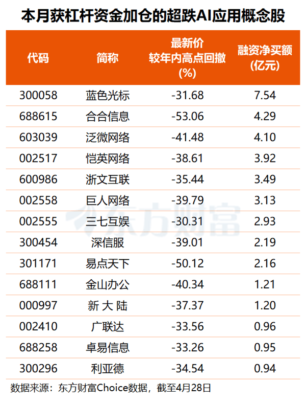 值得注意的是,上述超跌AI应用概念股中,有26股本月获超千万元融资净买入。