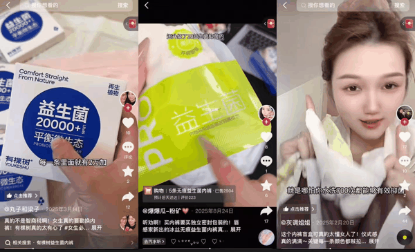 这些密集出现在社交媒体上的话术,宣传的都是同一类型产品——益生菌内裤。