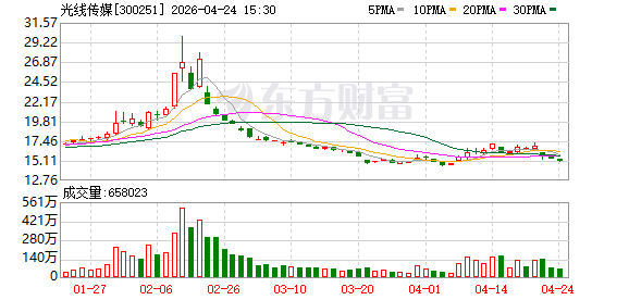 4月24日,光线 传媒 报收15.01元/股,跌幅2.21%。光线股价已经相对2025年2月的高点41.48元/股腰斩。