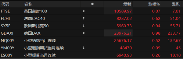 周二盘前,美股三大股指 期货 齐涨,欧洲主要指数普遍上涨。截至发稿, 纳斯达克 100指数 期货 涨0.52%,道指 期货 涨0.09%,标普500指数期货涨0.26%。个股方面,明星科技股盘前多数上涨, 甲骨文 涨超5%, 特斯拉 、 微软 、Meta Platforms、 阿斯麦 涨超1%。