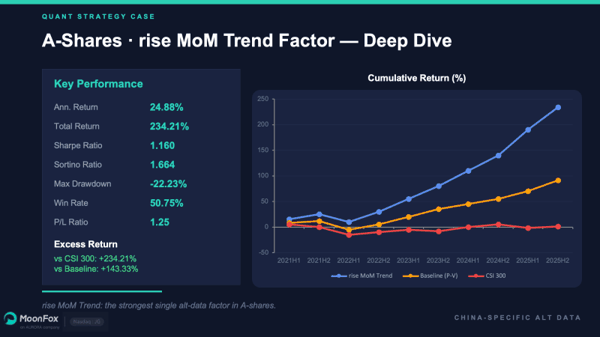 速读:基于月狐另类数据构建的因子,在A股和港股市场均表现出了卓越的超额收益能力:。