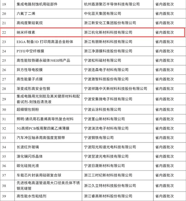 杭化新材料纳米纤维素成功认定为浙江省首批新材料!