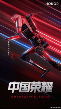 荣耀闪电夺得2026人形机器人半马冠军!50分26秒打破人类世界纪录