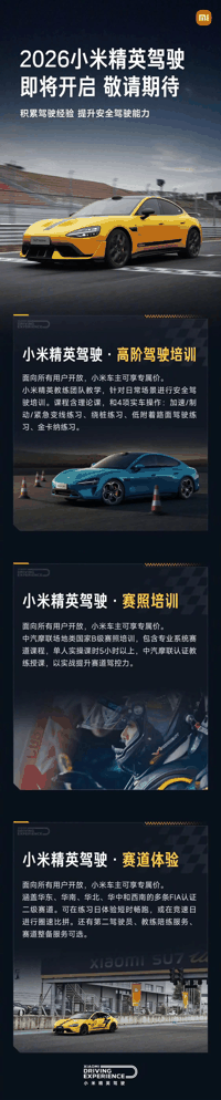雷军:2026小米汽车精英驾驶有三大活动拿下赛车执照