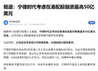 华尔街见闻在4月13日报道,宁德时代正考虑在香港进行股票发售。
